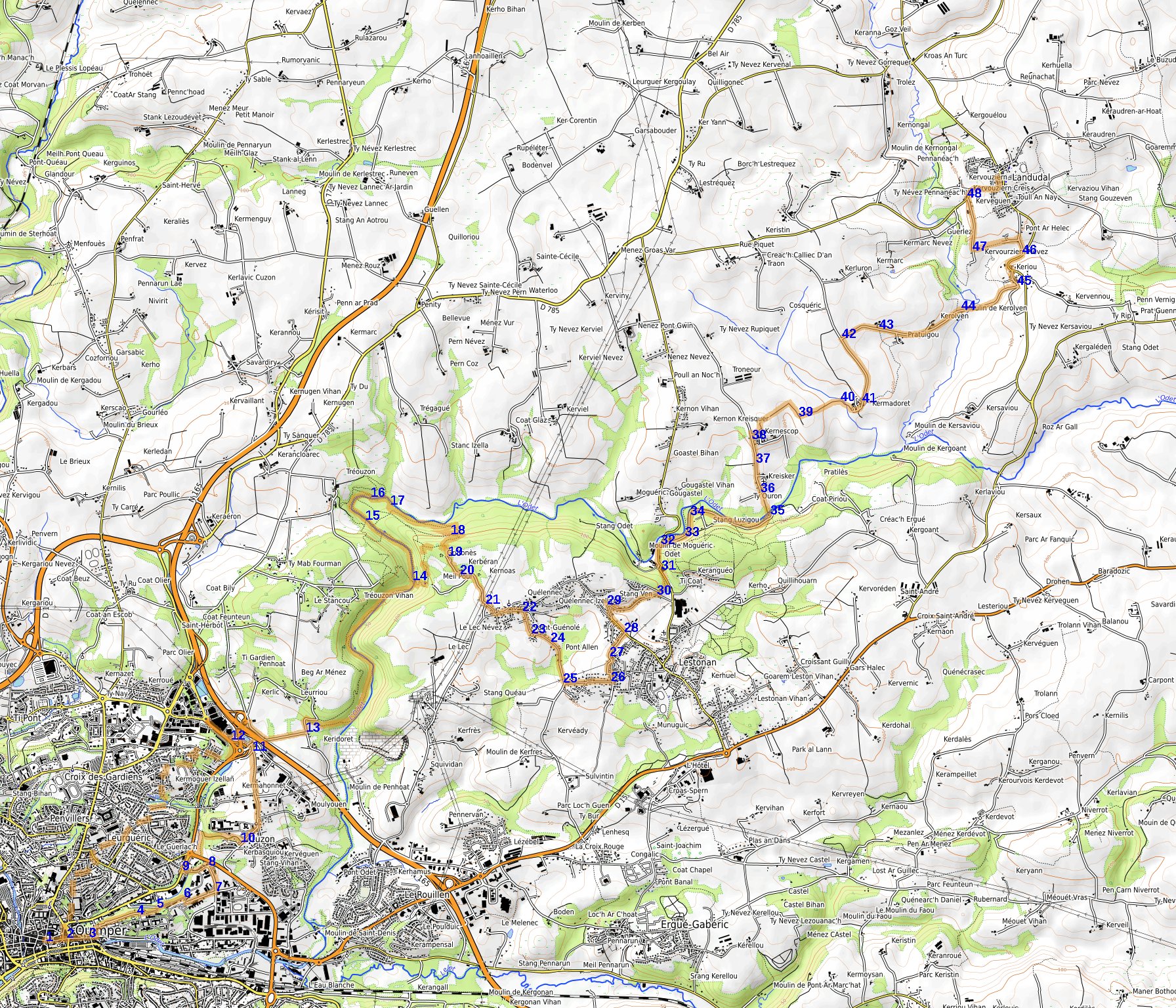 Cet itinéraire de 24 km relie Quimper à Landudal.